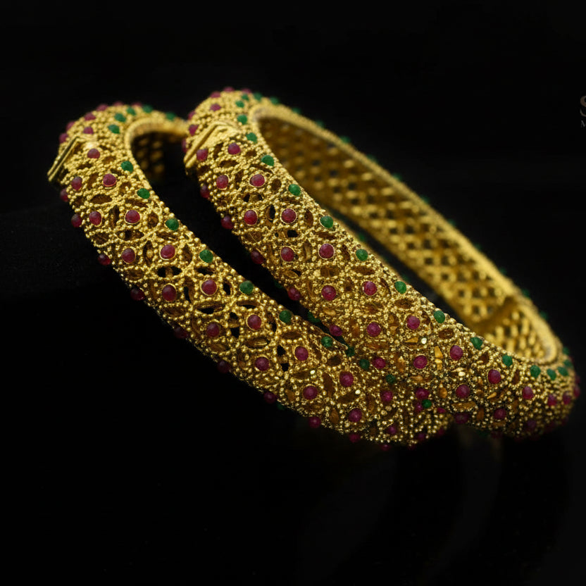 Exquisite antique bangles featuring authentic vintage craftsmanship and intricate traditional design. Each piece embodies historical elegance and timeless appeal, perfect for collectors and connoisseurs of fine heritage jewelry.